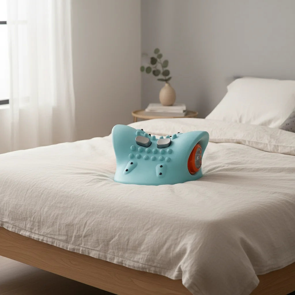 Notre oreiller combine l'électrothérapie EMS, l'acupression et la chaleur dans un seul appareil ergonomique et sans fil. Il offre un soulagement multifonctionnel et une efficacité prouvée, surpassant les solutions traditionnelles.